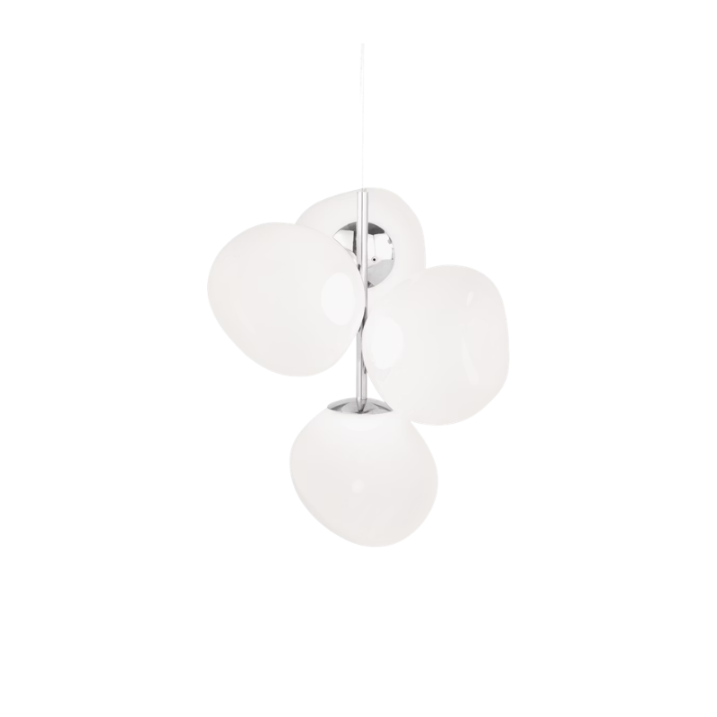 A swarm, huddle, herd, cluster, or bunch—there are a thousand ways of configuring our lamps to produce an extraordinary lighting arrangement. The latest additions to Tom Dixon's Melt family include the Melt Small Chandelier, featuring four orbs protruding from polished tubes and measuring one meter high. Fitted with their new LED module, Tom Dixon's Melt Chandeliers are an attempt to rethink the contemporary chandelier.