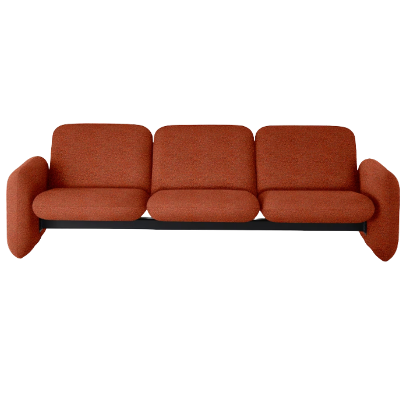 Designed by Ray Wilkes and first introduced in 1976, this eye-catching modular sofa made a lasting impression with bold, rounded-edge cushions that reminded people of the shape of Chiclet gum. Steel brackets joining the seat and back allow for independent flex that provides a surprising level of individual comfort. Available in configurations from 2- to 3-seaters.