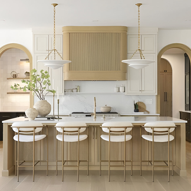 The Mollino by AERIN offers a contemporary take on old-world elegance. Suspended from a jewelry-like chain, the lightweight shallow bowl shapes in a plaster finish recall 1930s French sculpture yet deliver modern sophistication. The emanating warm glow will add subtle luxury to entryways, dining rooms, or hallways.