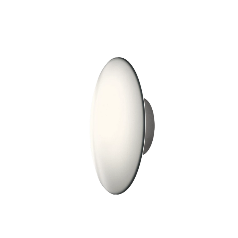 The AJ Eklipta wall lamp from Louis Poulsen was designed by Arne Jacobsen in 1956 for Rødovre Town Hall. Two sizes of the opal glass wall sconce were produced for this project: 13.7" and 17.7". They were used indoors on stairs and as outdoor wall lamps. An 8.7" version was later designed for St. Catherine's College in England. Arne Jacobsen preferred the largest model when specifying his own projects. Today, AJ Eklipta is used worldwide and in a variety of architectural contexts.
