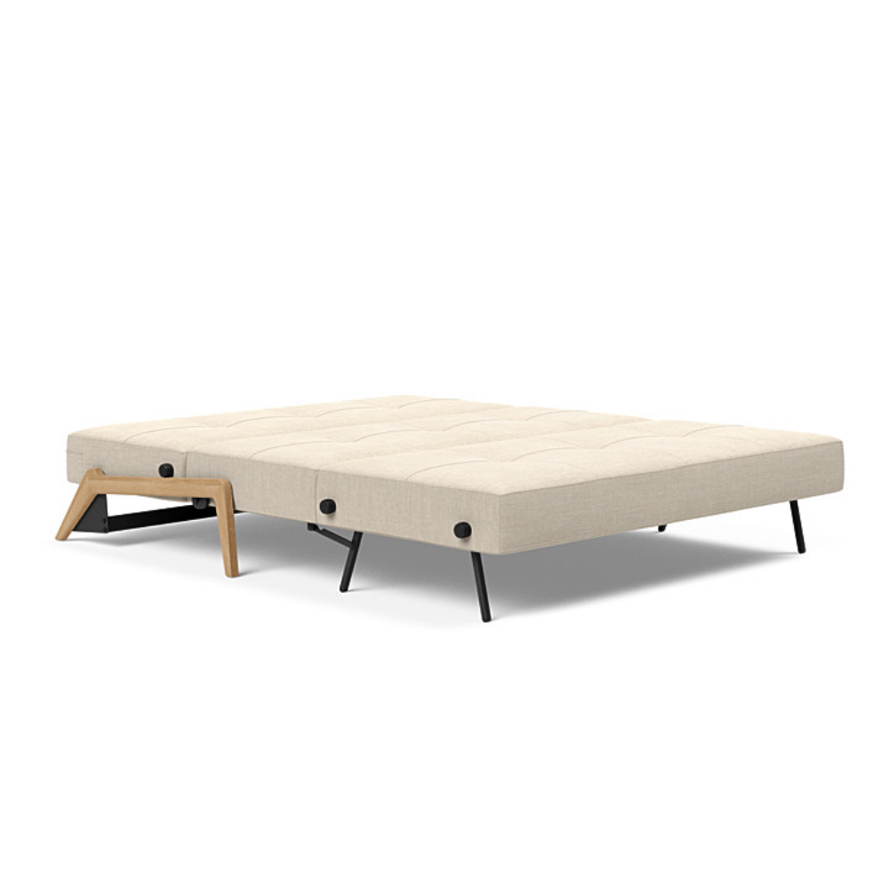 While paying homage to carpentry details, the construction of Cubed is developed based on limited space and compact living. Cubed folds out into the room, circumventing the need for pulling the sofa away from the wall while converting from sofa to bed. Cubed Wood is a user-friendly sleeper sofa that does not hog space while maintaining a generous queen bed. It fits well into the conscious urbanite’s living room, apartments, beach houses, and vacation homes as well as teenage and guest rooms. The Cubed design positively refreshes a room layout while offering a sizeable bed for a comfortable rest. Cubed holds a storage compartment under the seat that enables you to store beddings, blankets, or cushions.