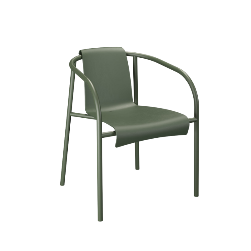 The NAMI chair consists of a powder coated steel frame with a beautifully molded plastic shell. The shell is made in Denmark and contains 97% Danish household plastic trash with an added 3% color pigment. The chair comes in 2 different color options, black and olive green, with the frame and shell in the same color and is 100% Danish.