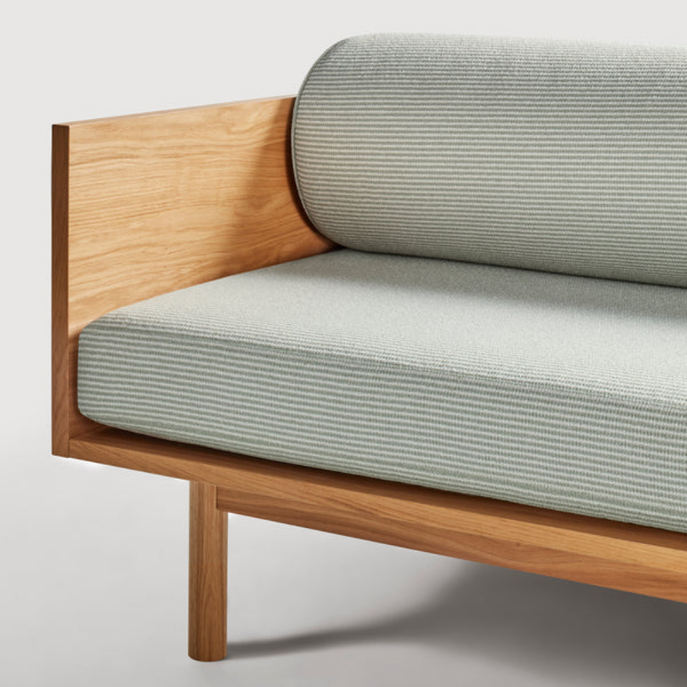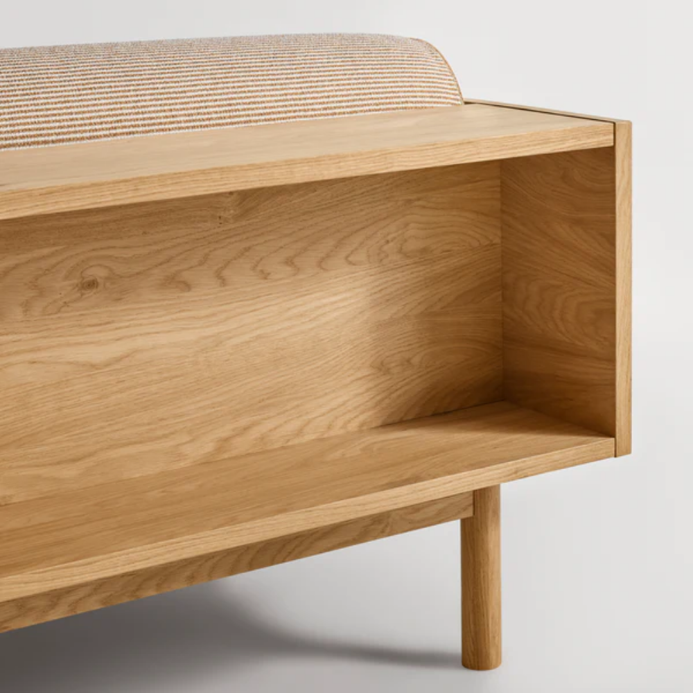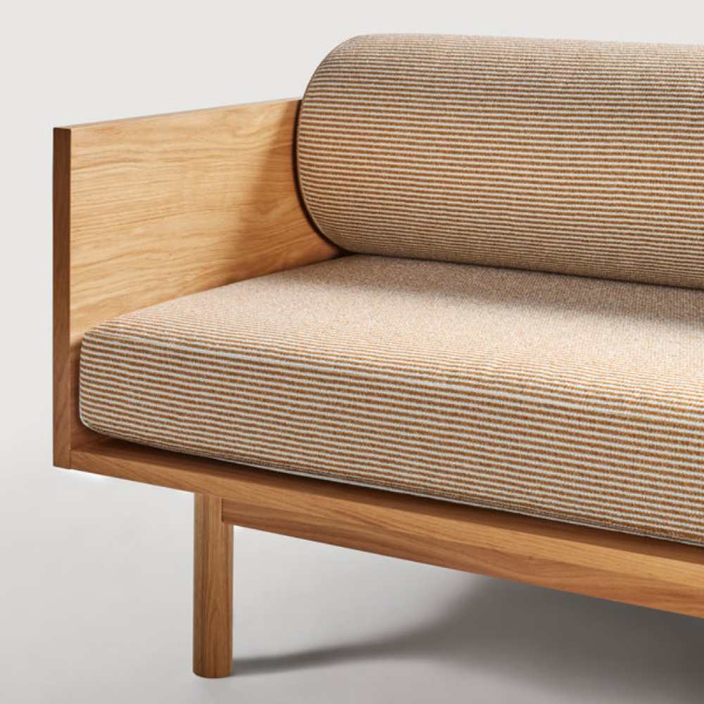 Upholstery: Irving Copper Stripe and White Oak