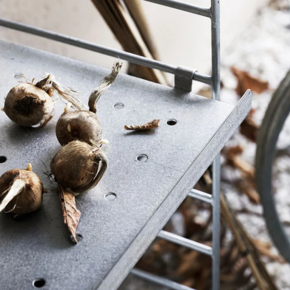 Outdoor Bundle M is a free-standing galvanized shelf intended for outdoor use. This larger three-section combination from String Furniture is optimal for the larger balcony or patio. A mix of galvanized metal shelves with high and low edges gives the shelf character and further storage possibilities. The galvanized material changes over time and leaves you with a beautiful patina.