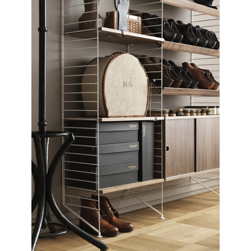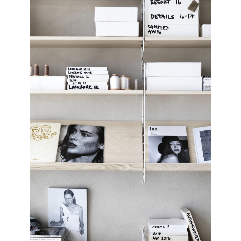 Bonnier's public library realized that the majority of Swedish homes were not furnished with a focus on bookshelves, which made it quite difficult for them to sell books. In 1949 they announced a competition where they asked all contributors to submit a design for a shelf with a few criteria. The shelf needed to be affordable, easy to ship, and equally easy to assemble. String® ticked all the boxes and was announced winner that same year. Naturally, String® became a very common piece of furniture in Swedish homes during the 1950s. The 1950s and 1960s were eventful years for String Furniture, which was generously mounted in the offices of the UN Headquarters in New York, a gold medal winner at the Milan Triennale, part of the exhibition at H55, which was the start of the design movement in Swedish design, and String® System also became the best-selling Scandinavian furniture piece in Germany.