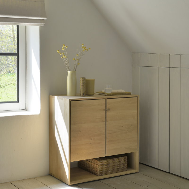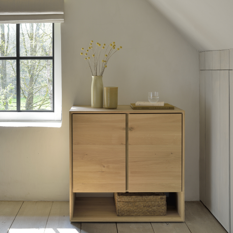 Experience the timeless elegance of the Nordic Sideboard by Ethnicraft. Crafted from solid oak and featuring beveled edges, this piece embodies the essence of Scandinavian design. Its clean lines and natural beauty make it a perfect addition to any modern home.