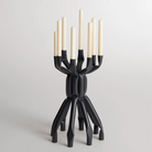 Bring it out at night. Pinched powder-coated steel bends to create a modern candelabra and avant-garde eye candy. Sink your teeth into two satisfying sizes. Available in small and large.
