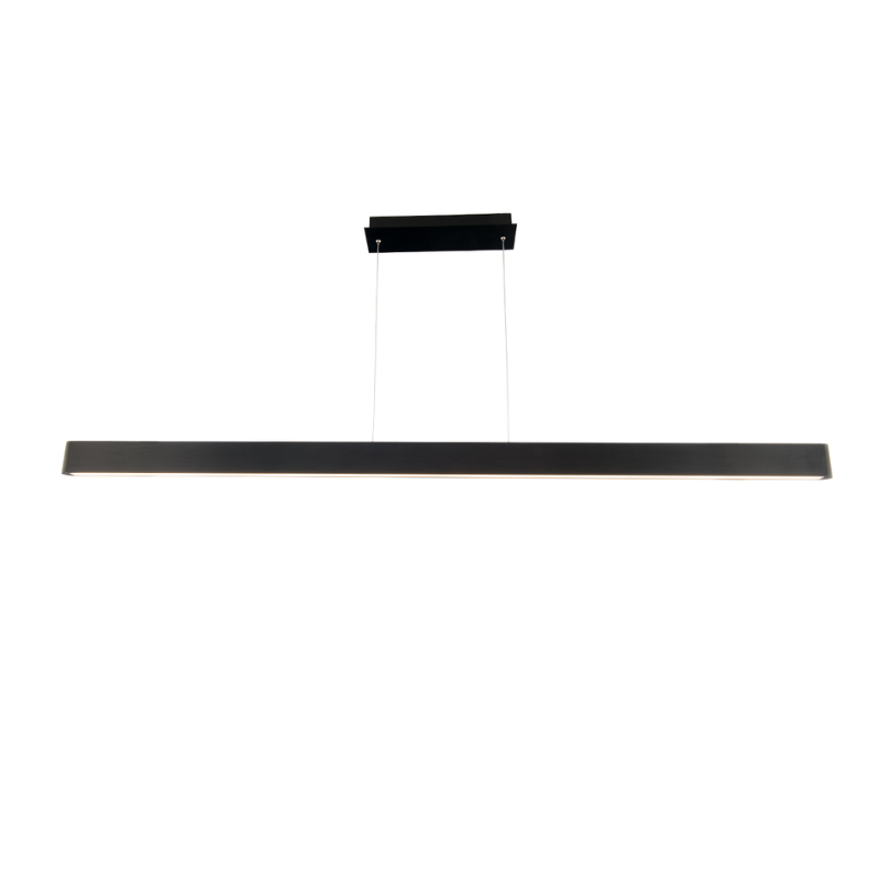 With its minimalist form and high output energy-efficient lighting, the Volo LED Linear Pendant by dweLED is the perfect lighting solution for contemporary residential and commercial settings. Its linear form consists of a die-cast aluminum body (with rounded ends) that contains a frosted acrylic diffuser and integrated LEDs. Though slim in appearance, the fixture’s lighting is robust, providing a pleasant, even illumination that can be used for your next dinner or office meeting.