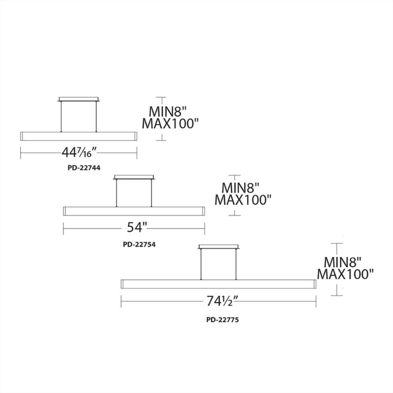 - 54 inch: 30W LED, 120-277V, 50/60/Hz, 2540 Lumens, Color Temperature: 3000K, CRI: 90, ELV Dimming: 100-10%, 0-10V Dimming: 100-5%, TRIAC Dimming: 100-10%
